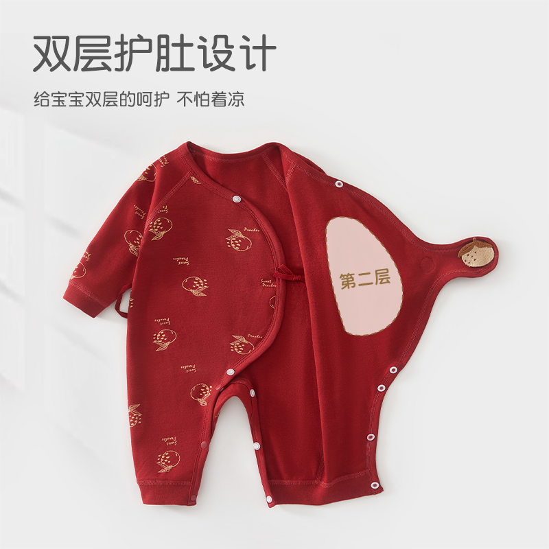 新生婴儿衣服a类纯棉连体衣满月宝宝婴幼儿0到3个月初生红色2月龄
