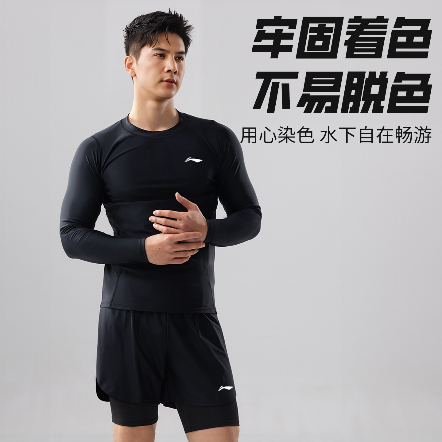 游泳衣专业防晒速干温泉男款 李宁男士 长袖 套装 沙滩冲浪服 泳衣泳裤