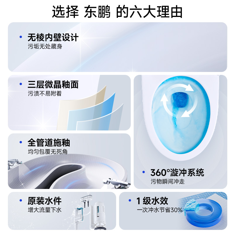东鹏卫浴虹吸式 抽水马桶大户型节水大冲力卫生间家用防臭坐便器