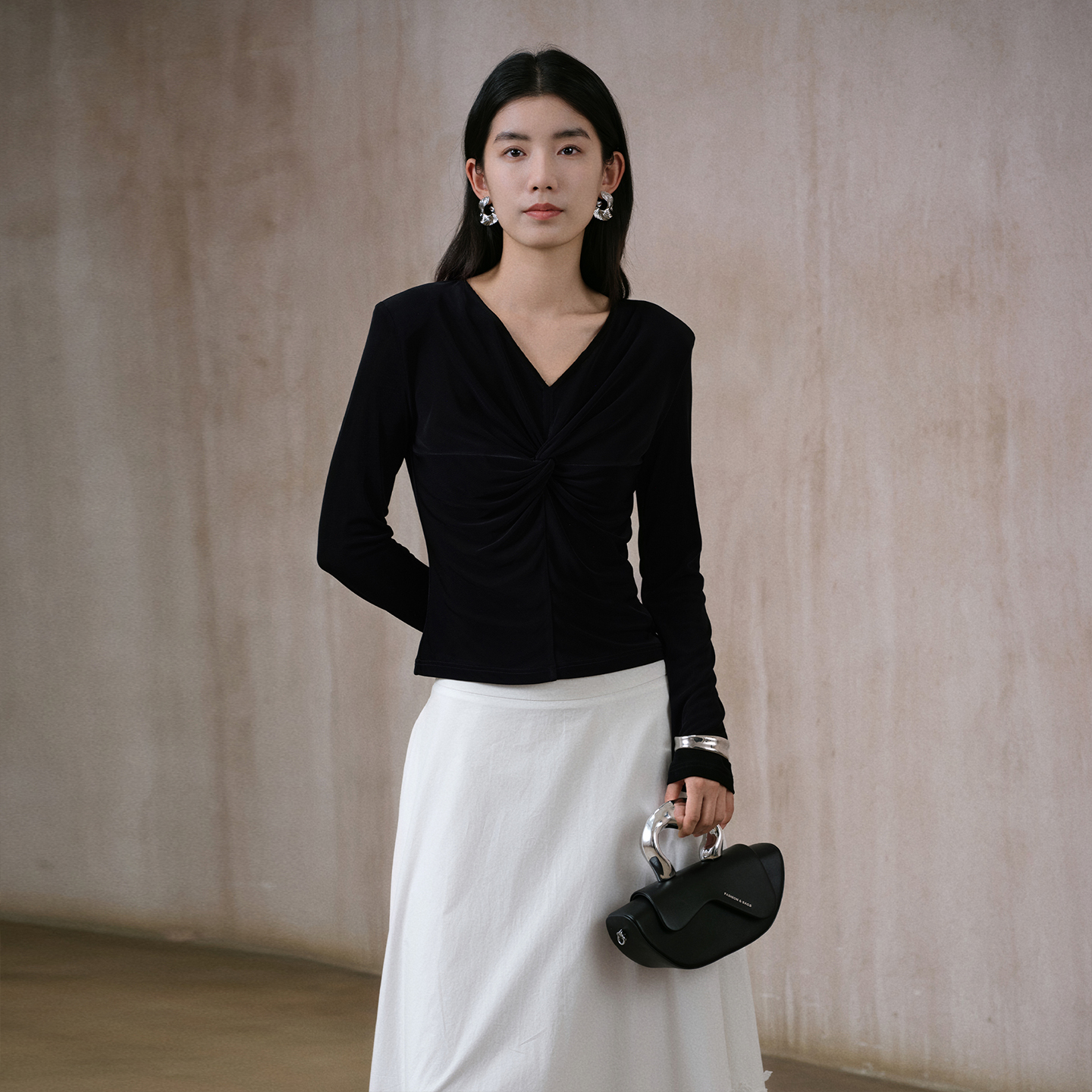 T恤女25秋季 阿依莲气质长袖 新款 打底针织衫 上衣 修身 商场同款