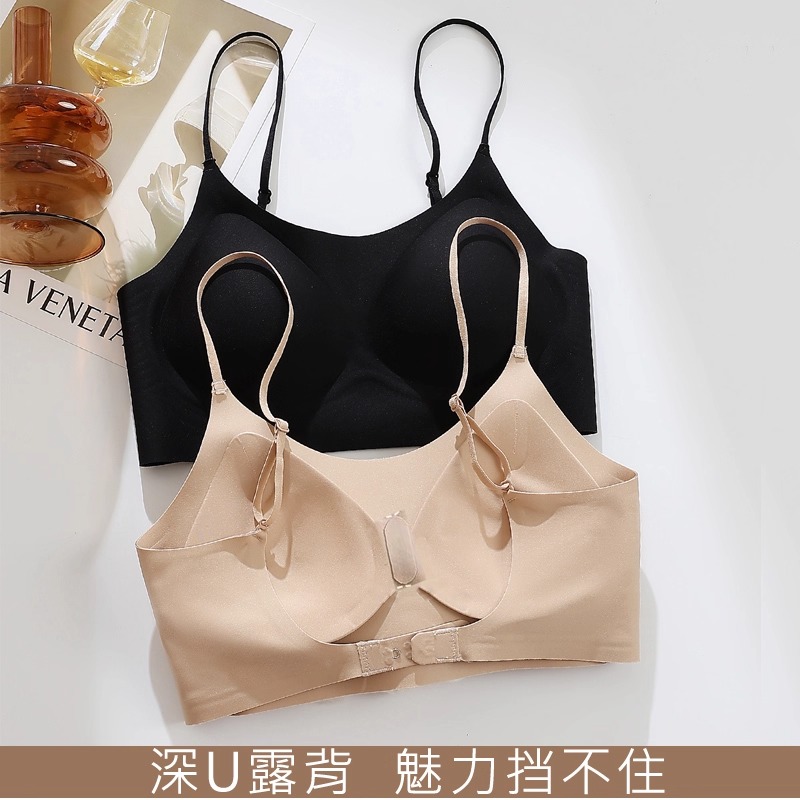 无痕美背抹胸内衣女小胸聚拢可外漏细肩带一体固定杯背心式 文胸罩
