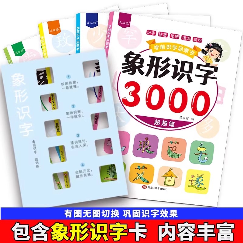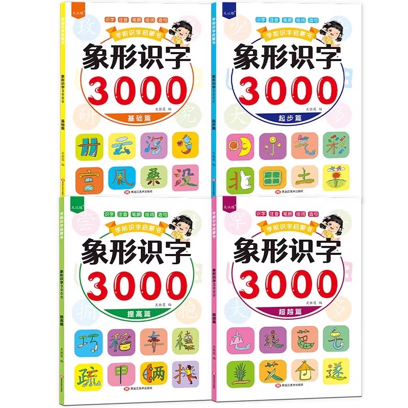 学前识字启蒙书 象形识字3000字全4册幼儿园大班学前班识字书带拼音早教启蒙书教材看图识字幼儿识字认字书幼小衔接小学生组词造句