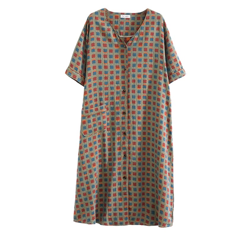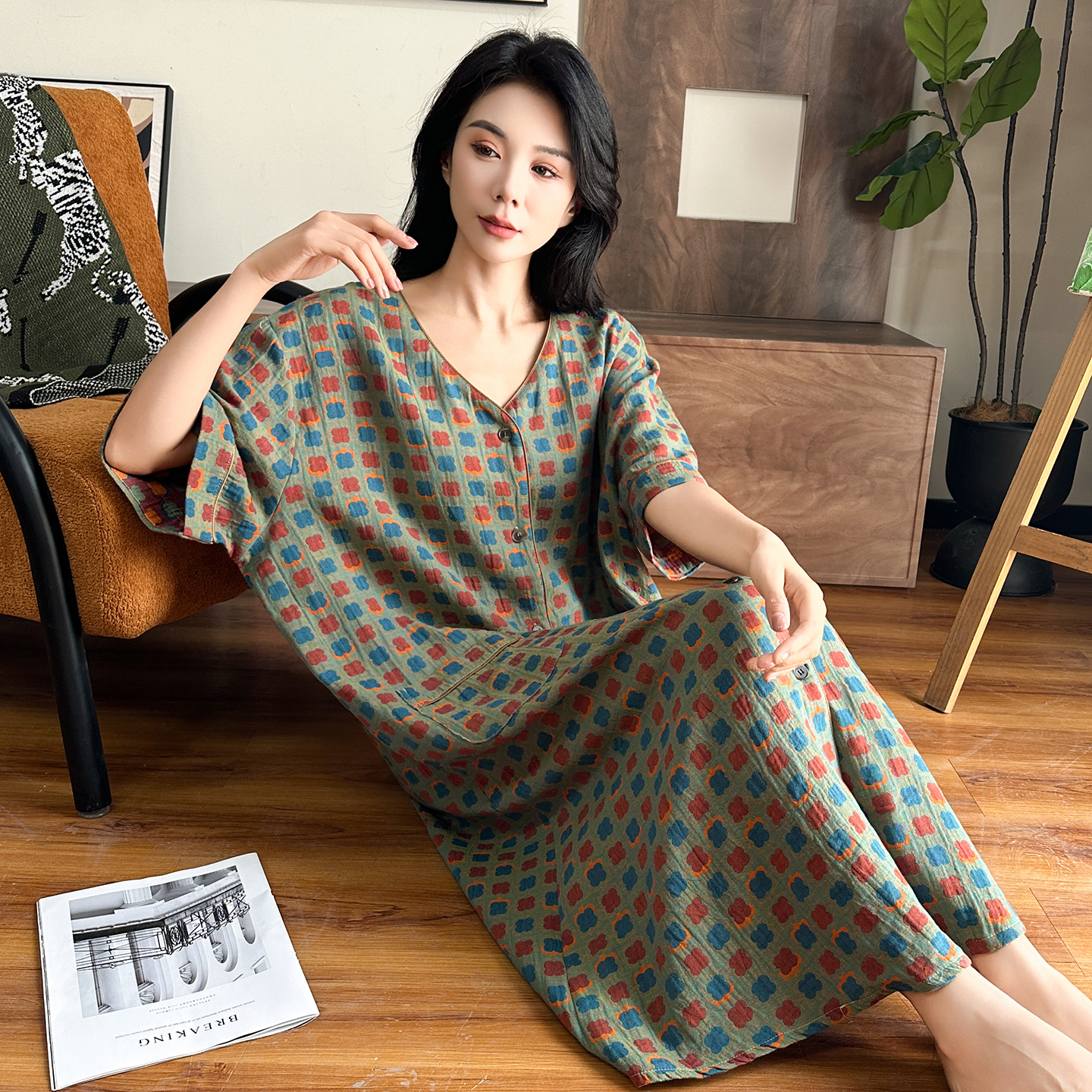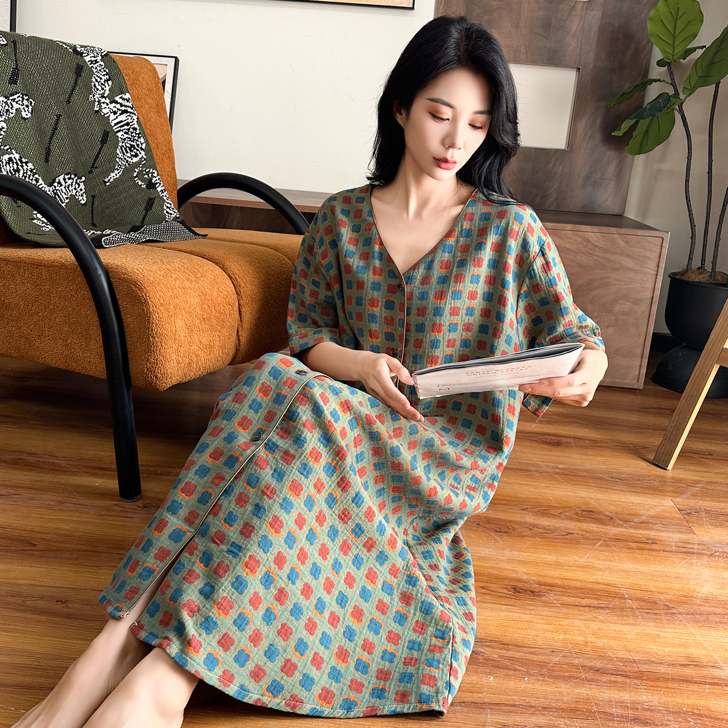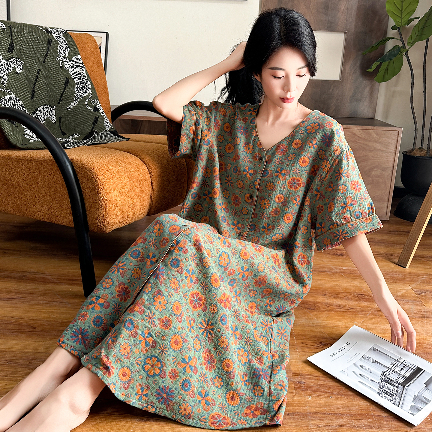 睡衣家居裙胖mm200斤 纯棉睡裙孕妇产前待产棉纱开衫 夏季 女大码
