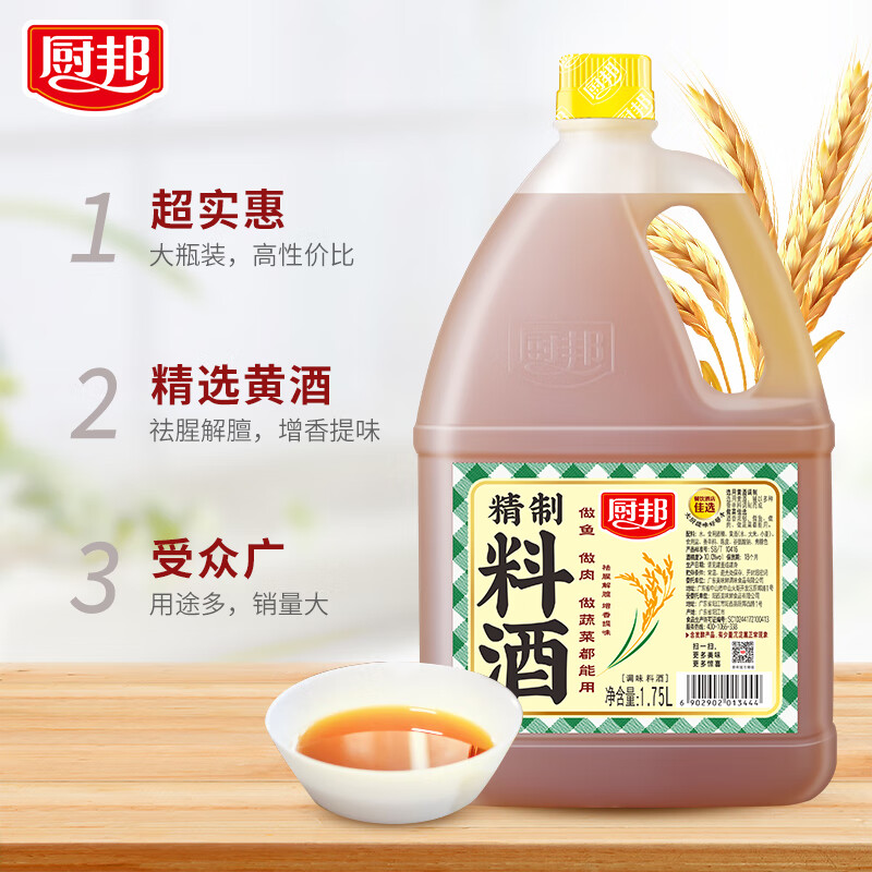 厨邦精制料酒1.75L提味增香祛腥炒菜烹饪炖肉黄酒袪腥解膻