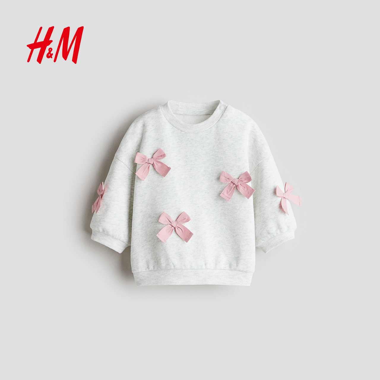 加绒落肩长袖 新款 圆领图案卫衣1296763 女婴卫衣2025秋季 HM童装