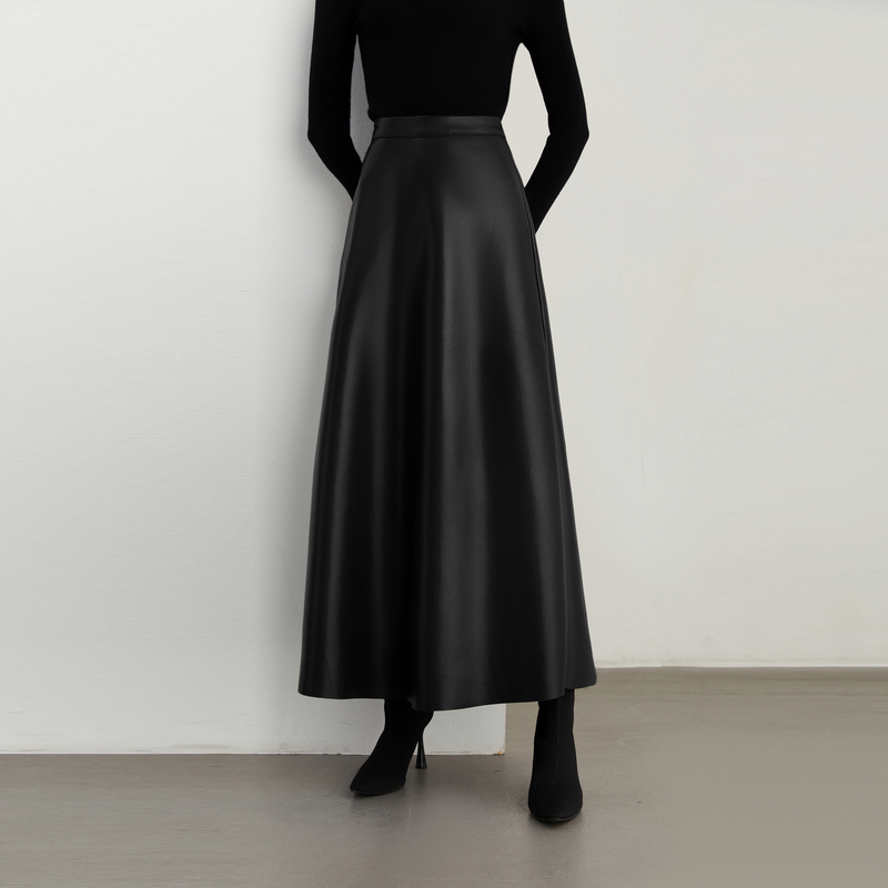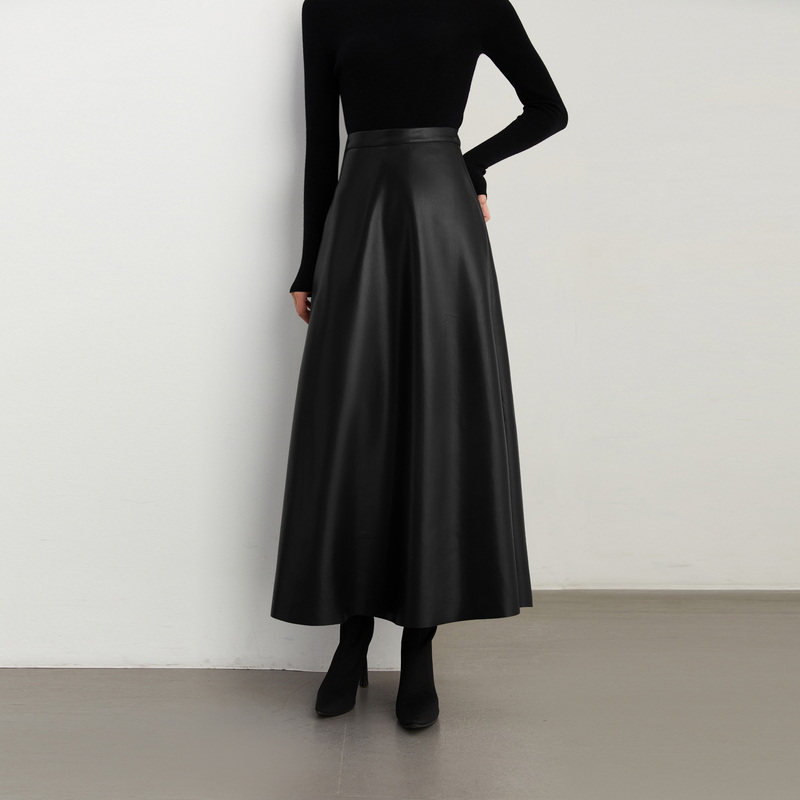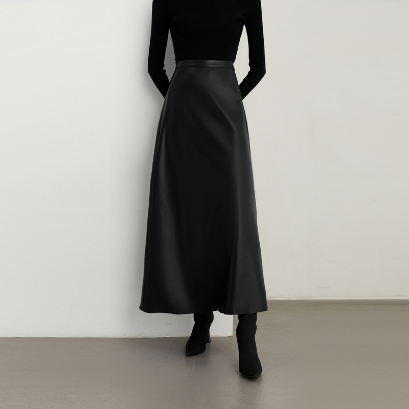 裙子长裙 复古黑色半身裙女高腰气质皮裙长款 DPLAY2025年秋季 新款