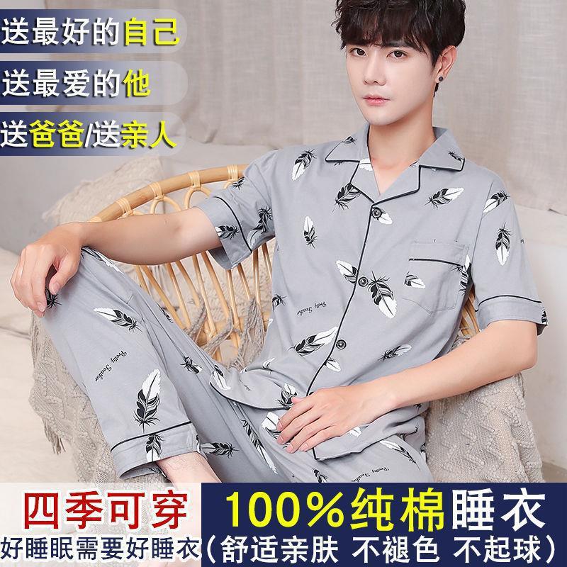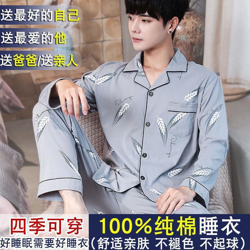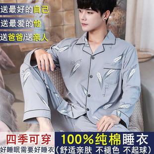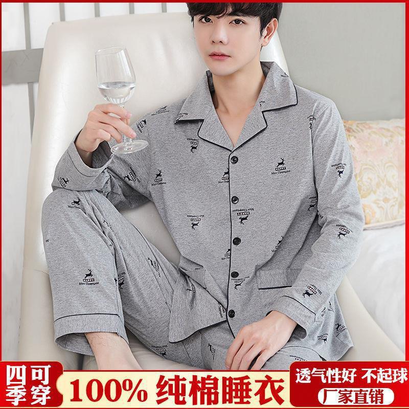 款 可外穿 秋季 套装 薄款 大码 四季 家居服男款 纯棉长袖 春秋款 睡衣男士