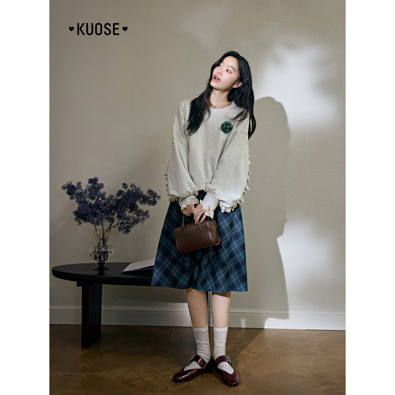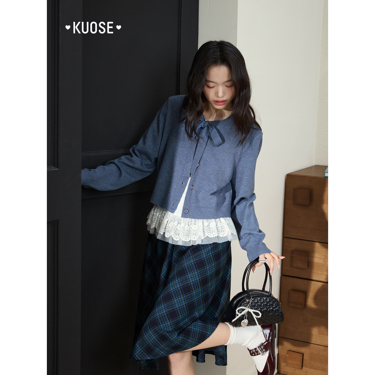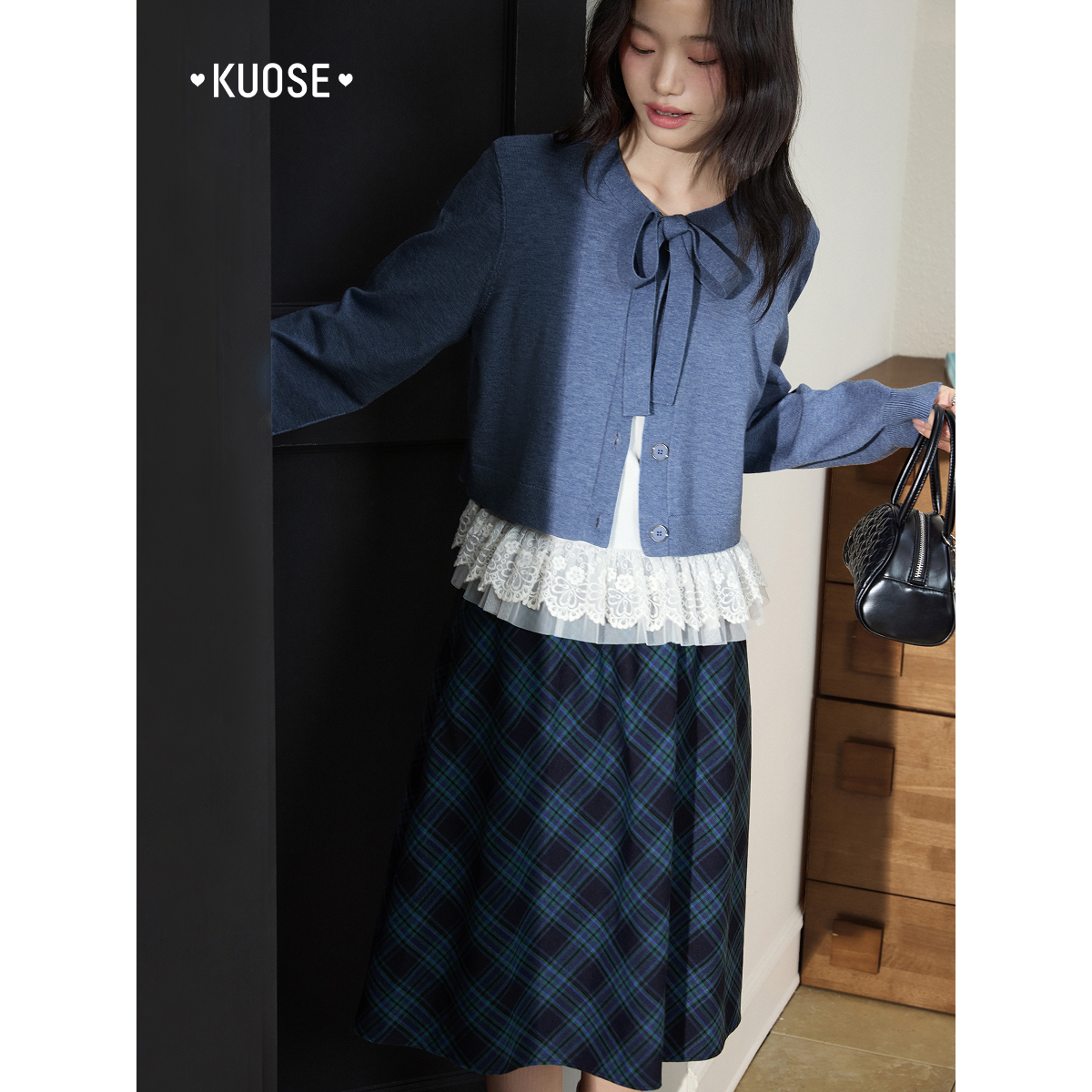 阔色复古格子裙半身裙绑带伞裙25秋季 女半裙格纹短裙子带腰带 新款