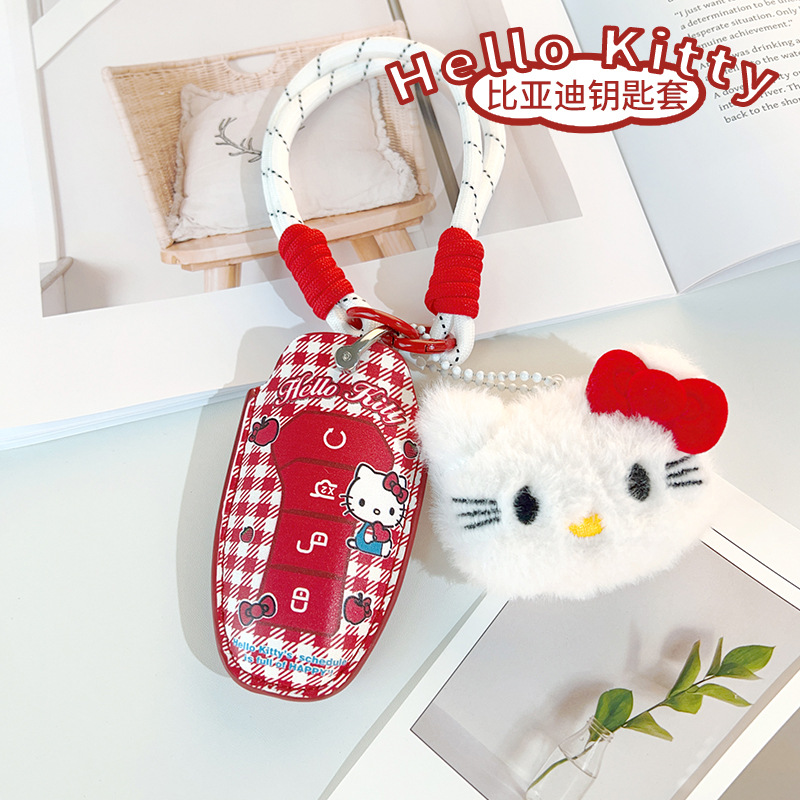 适用比亚迪钥匙套海鸥海豚海豹06秦Plus汉dmi宋L元 Pro樱桃红kitty