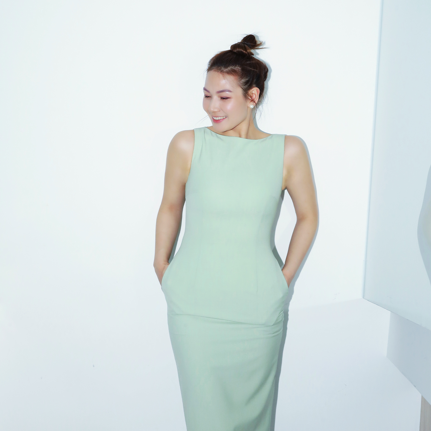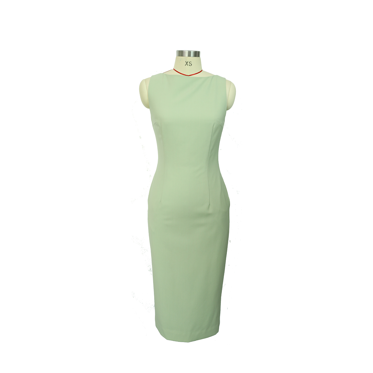 职场通勤正装 过膝大女主连衣裙 浅绿色羊毛混纺小一字领修身