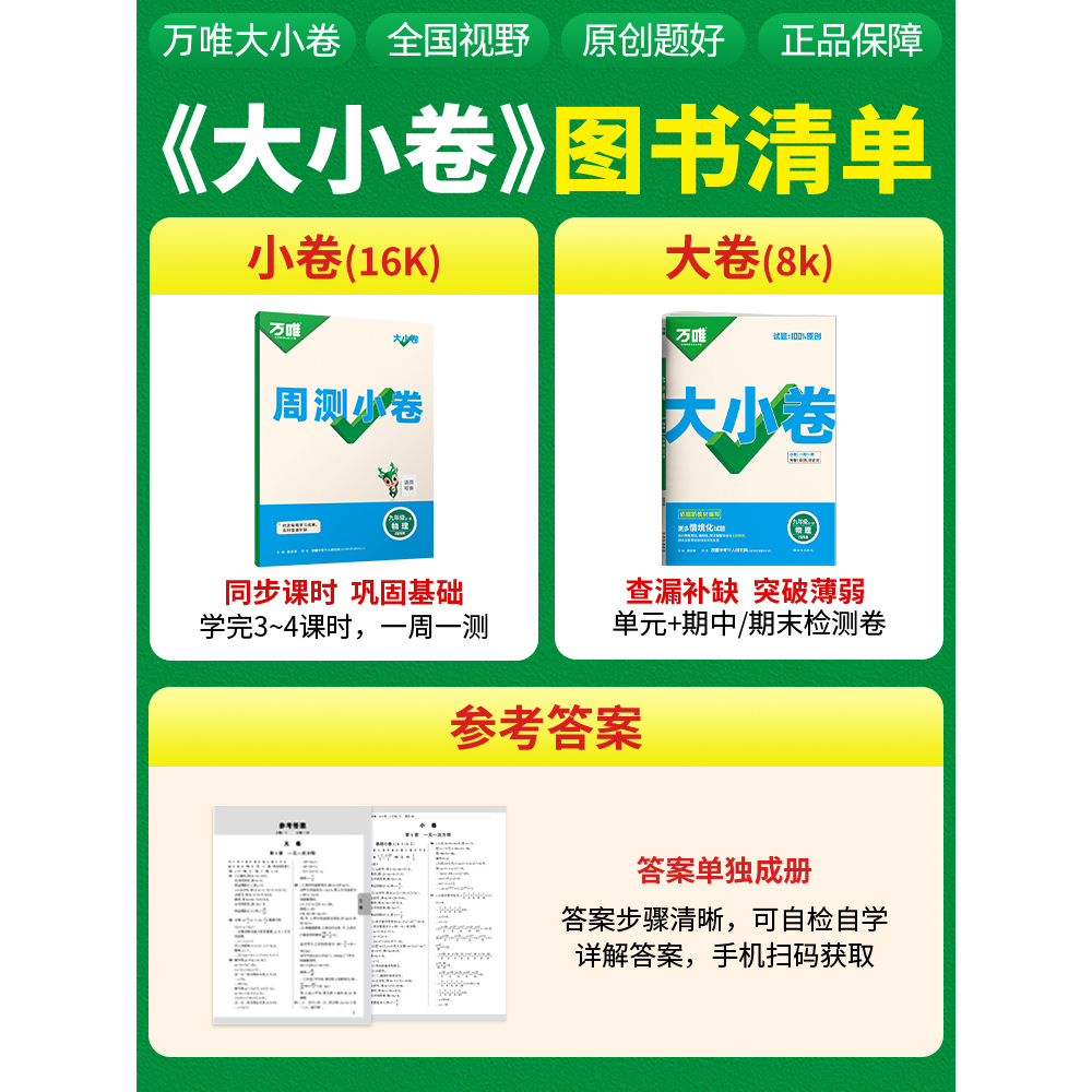 测试卷巩固基础原创题万唯 全一册初中同步试卷训练模拟复习基础题单元 2026新版 万唯大小卷九年级物理沪科版