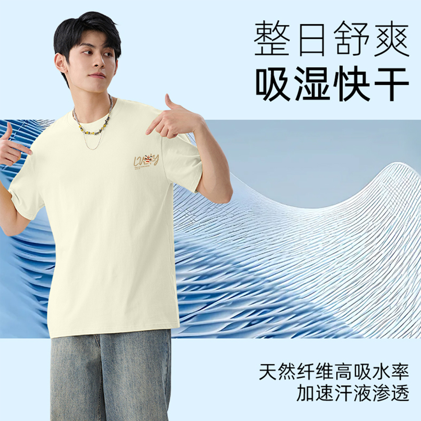 半袖 班尼路国潮醒狮纯棉短袖 宽松纯棉男士 25夏季 潮牌印花t恤 男款