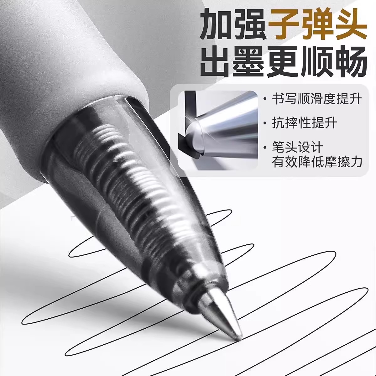 晨光按动中性笔gp1008学生专用0.5子弹头考试碳素黑色水笔圆珠笔按压式 水性签字笔芯墨蓝黑红笔老师办公文具