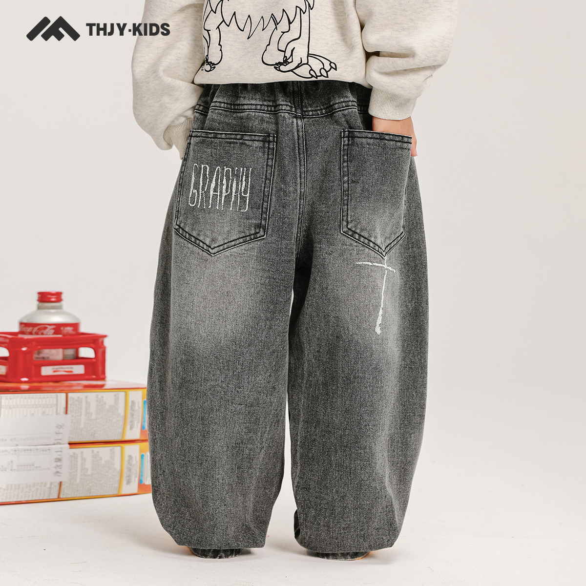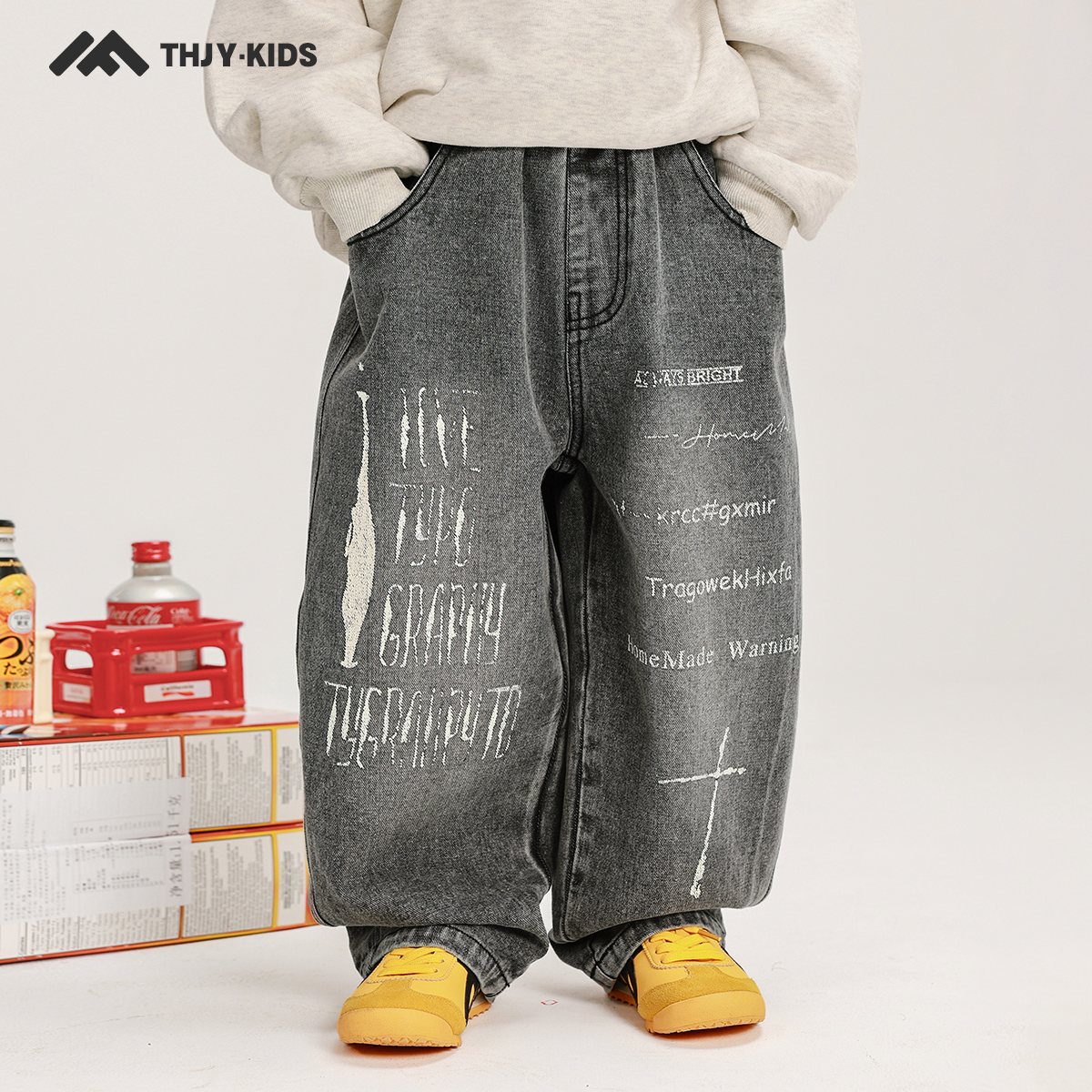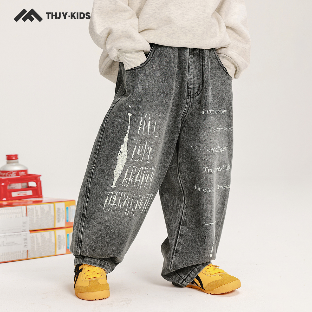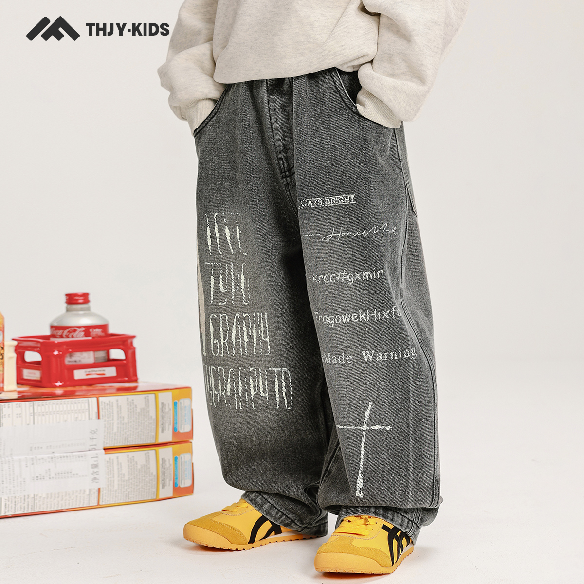 时髦帅气休闲字母涂鸦长裤 男童牛仔裤 阔腿宽松春秋款 2025新款 秋款