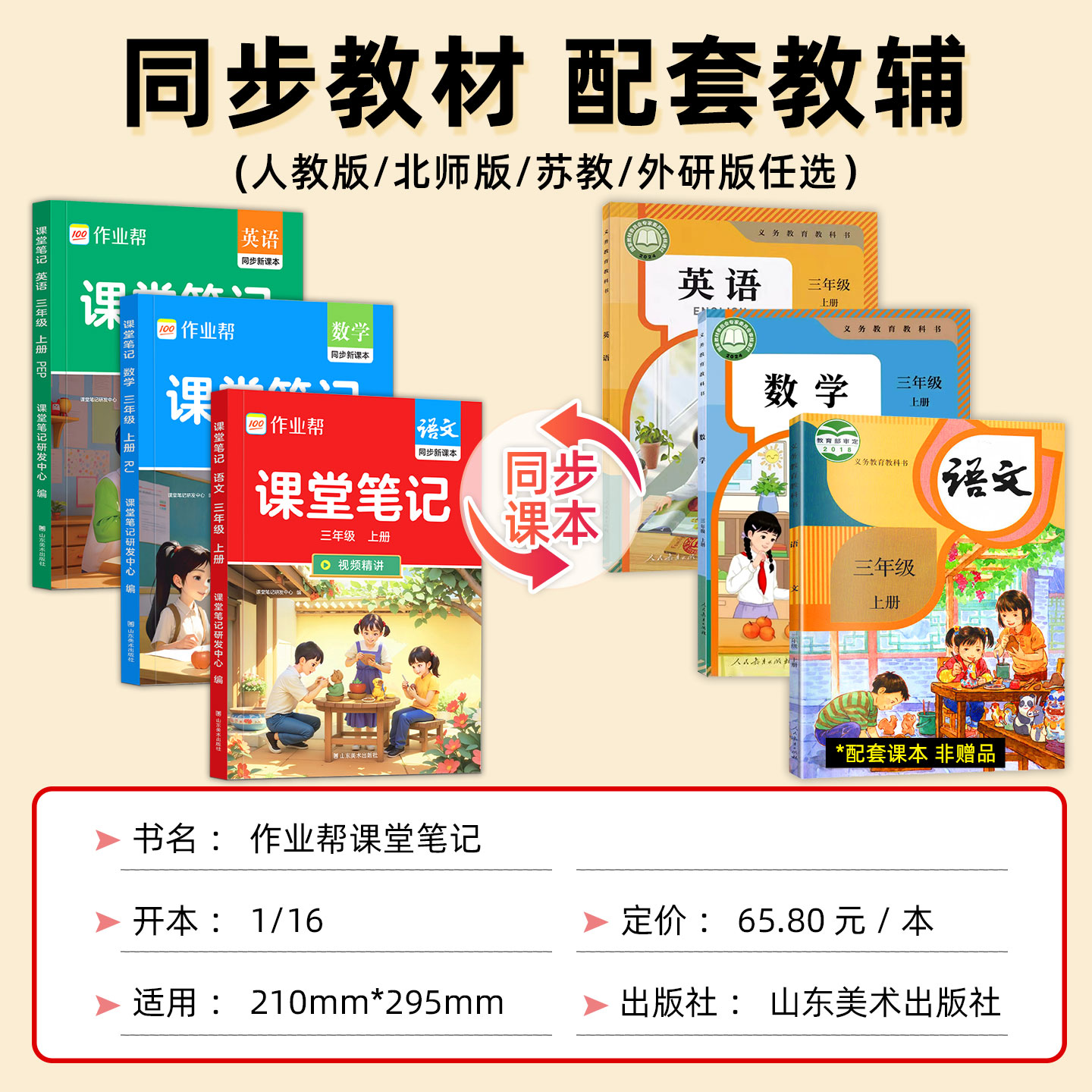 2025 作业帮语文数学英语北师苏教小学3年级上教材全解读黄冈语文书随堂笔记同步练习预习复习书同步训练 三年级上册课堂笔记人教版