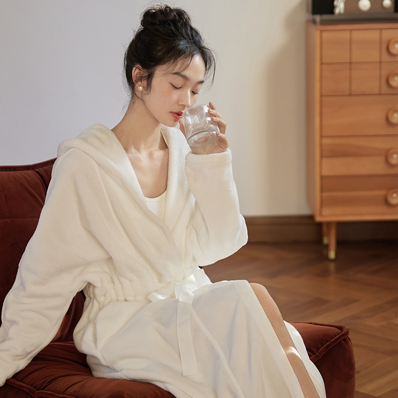 家居服浴袍冬款 保暖睡衣长款 冬季 睡袍女加绒加厚珊瑚绒2025年新款