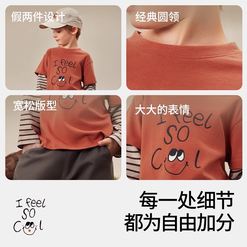 儿童男女童假两件舒适纯棉上衣T恤 春秋季 贝肽斯长袖 t恤2025年新款