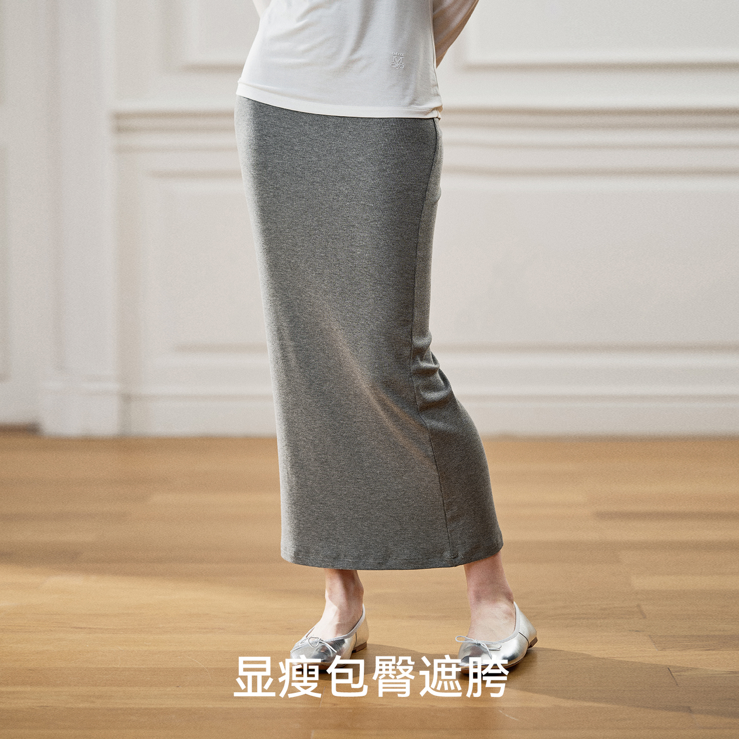 嫚熙高弹优雅花边垂垂半裙女夏直筒微喇遮胯小个子孕妇裙2025新品
