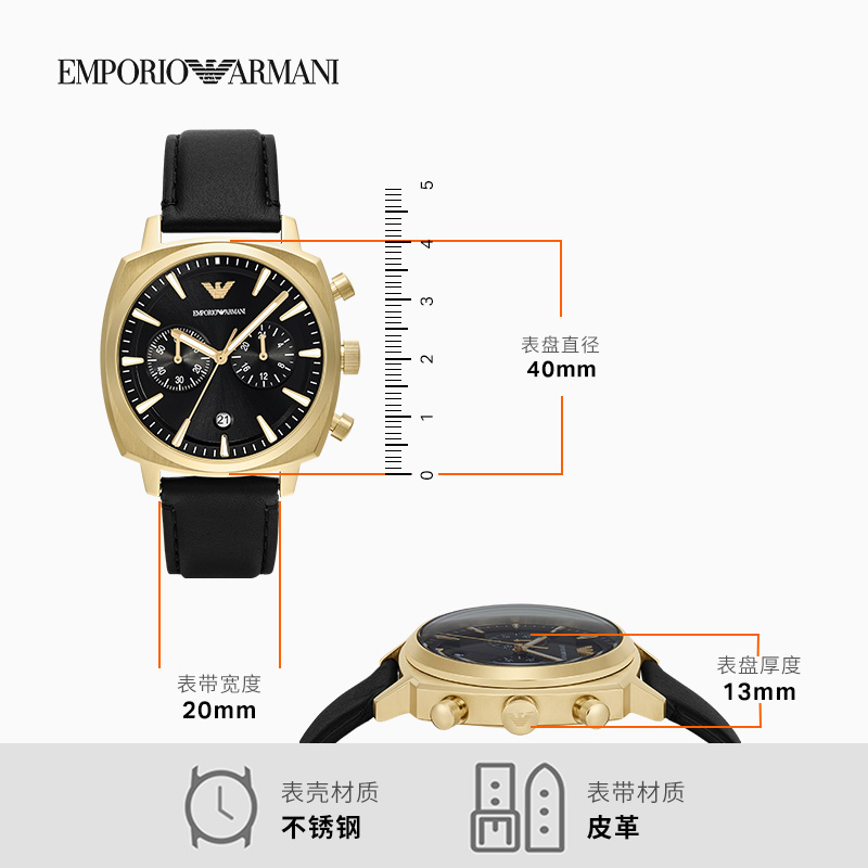 新款 阿玛尼秋季 男夜光月相表细皮带石英手表腕表 ARMANI EMPORIO