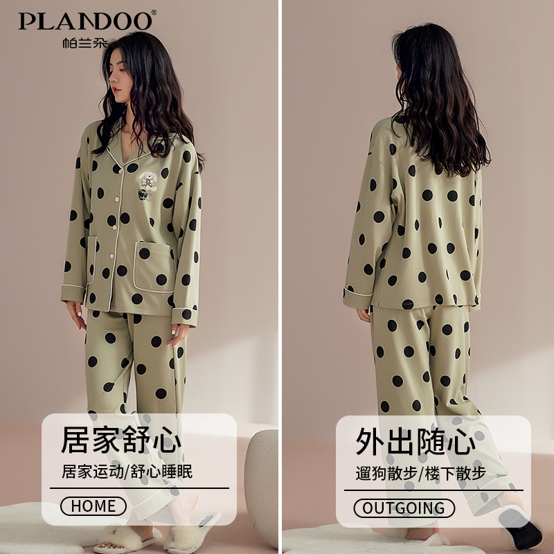 猫人100%纯棉睡衣女长袖 2025新可爱高级外穿家居服 秋冬带胸垫套装