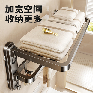 吸盘卫生间毛巾架浴室置物架免打孔壁挂式 浴巾架收纳架折叠多功能