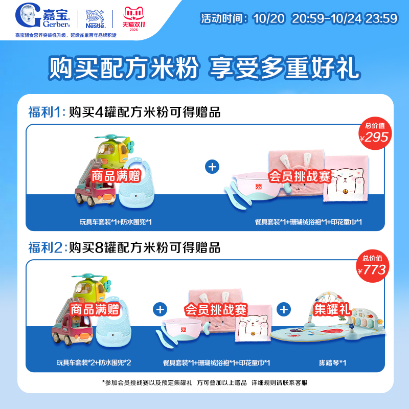 嘉宝配方米粉HMO高蛋白益生菌婴儿辅食宝宝米粉4罐 营养好吸收