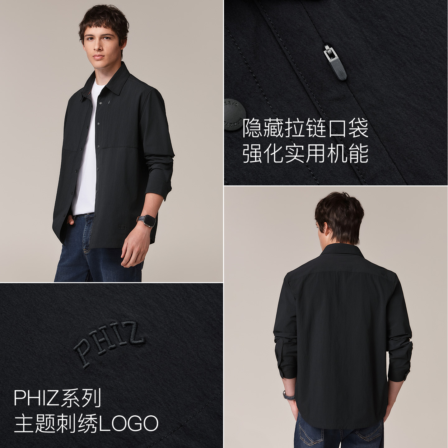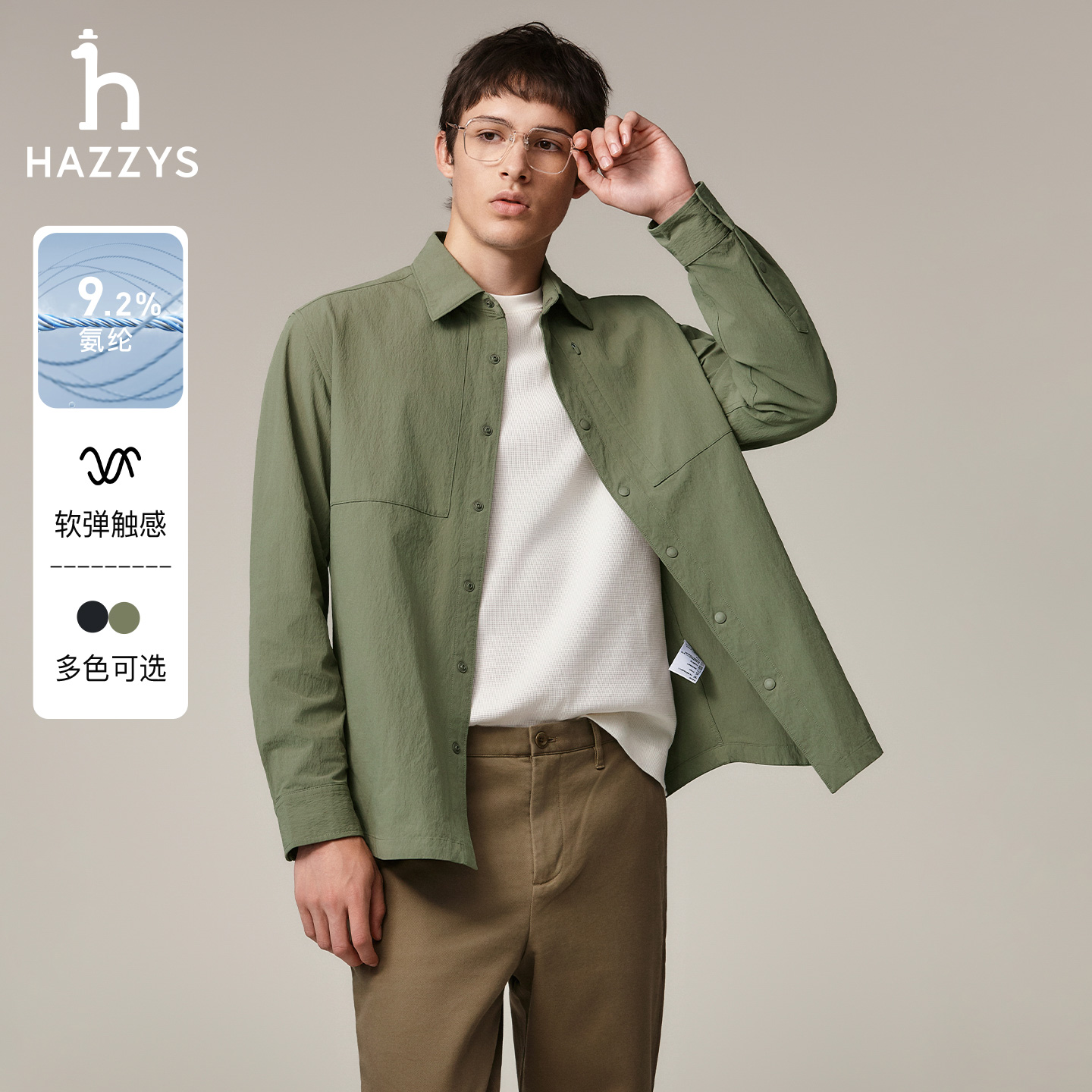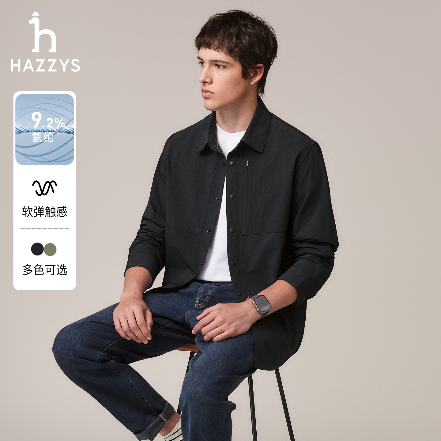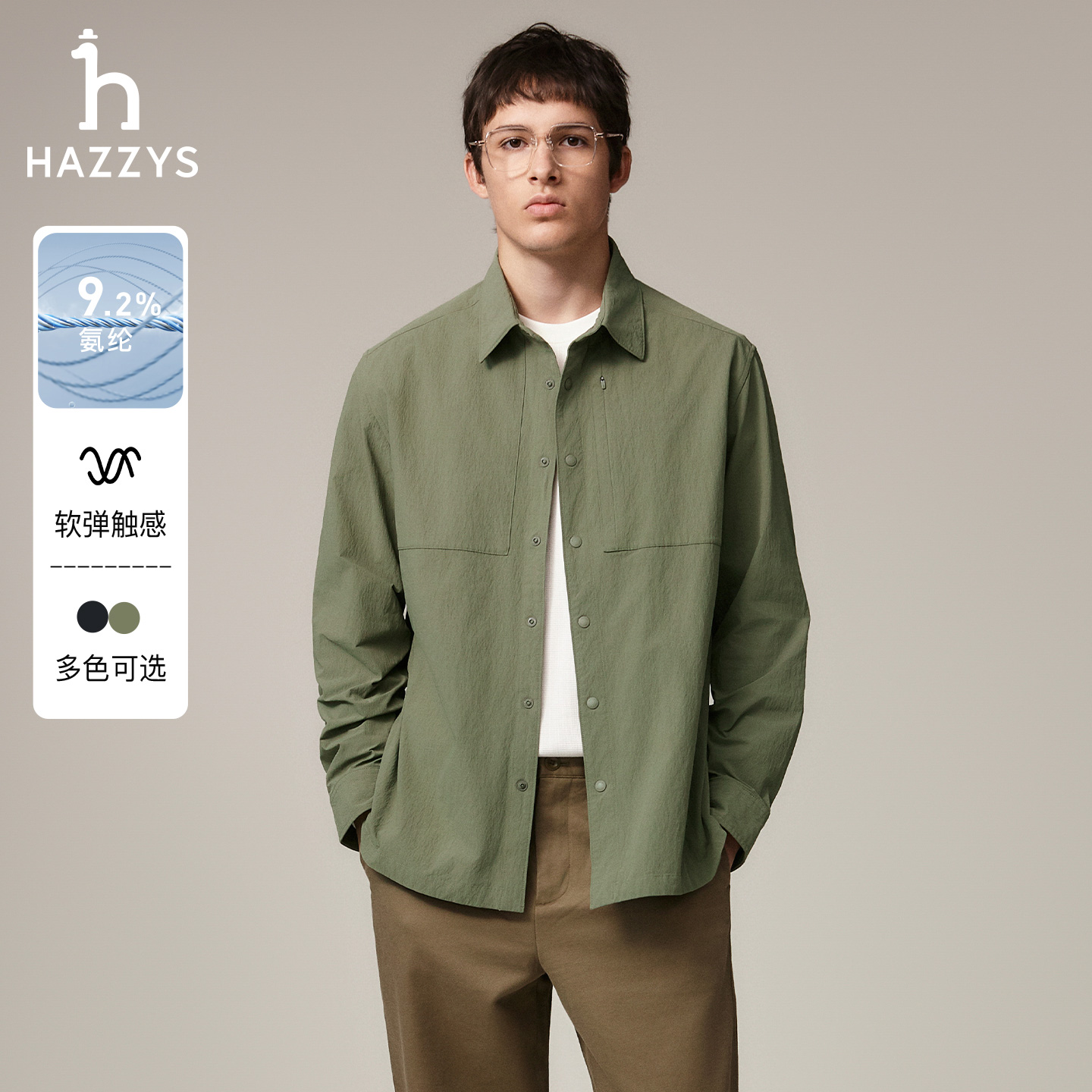 衬衫 Hazzys哈吉斯休闲男装 简约通勤时尚 衬衣男士 外套潮流 纯色长袖