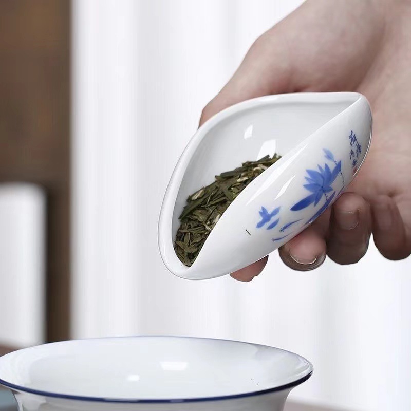 白瓷茶荷瓷茶则陶瓷茶赏茶则茶铲赏茶茶勺功夫茶具茶艺茶道配件