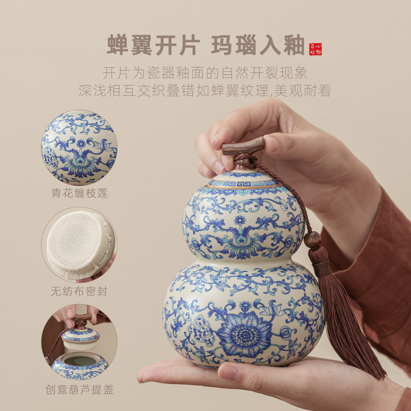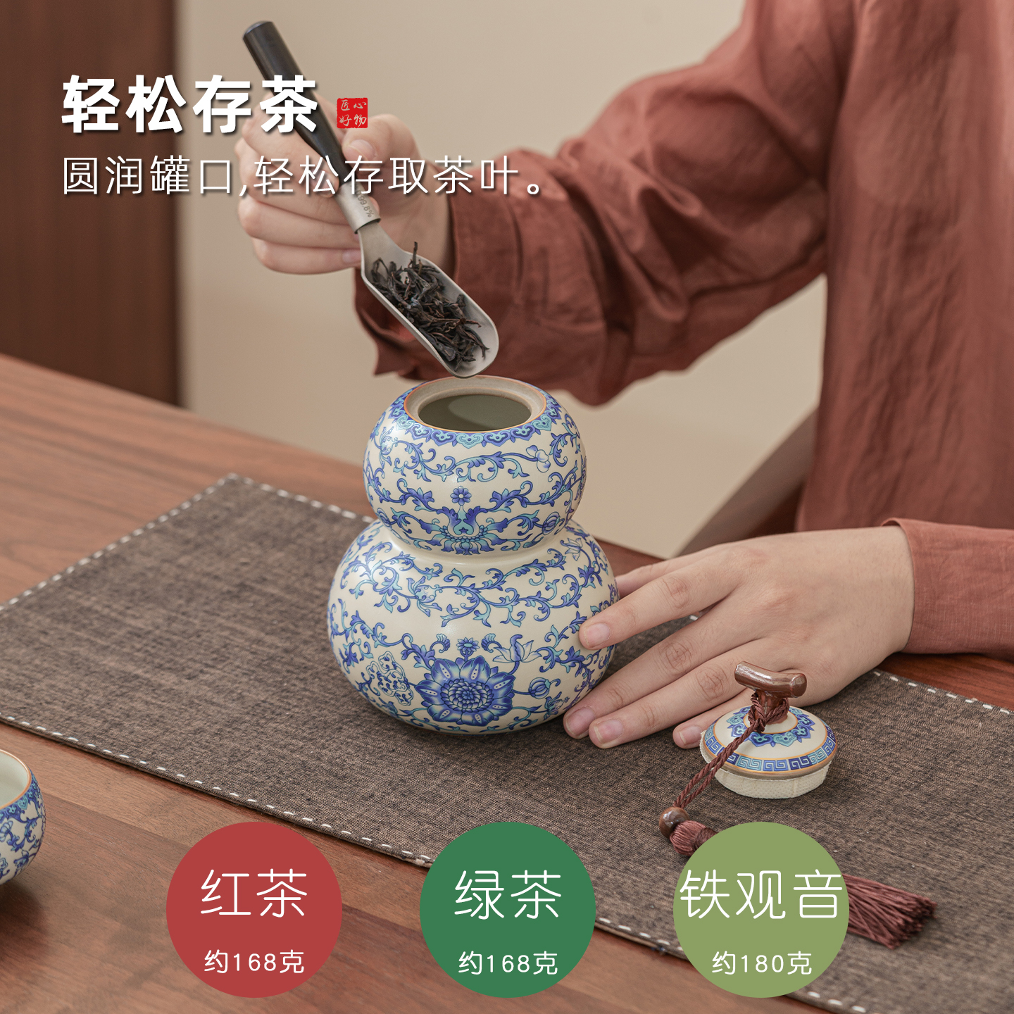 青花汝窑茶叶罐陶瓷中式 复古空罐密封罐存茶罐储存罐家用储茶罐