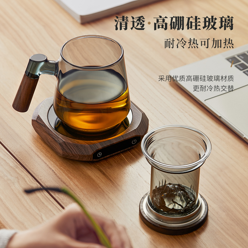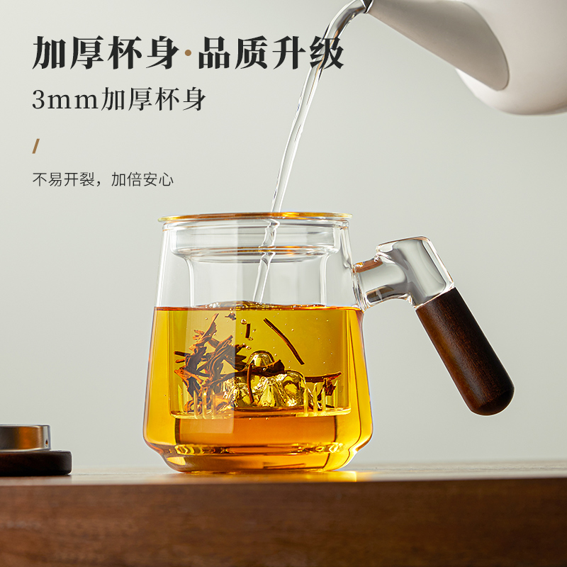希乐玻璃杯水杯高硼硅耐高温带盖茶杯男士 泡茶专用茶水分离杯子