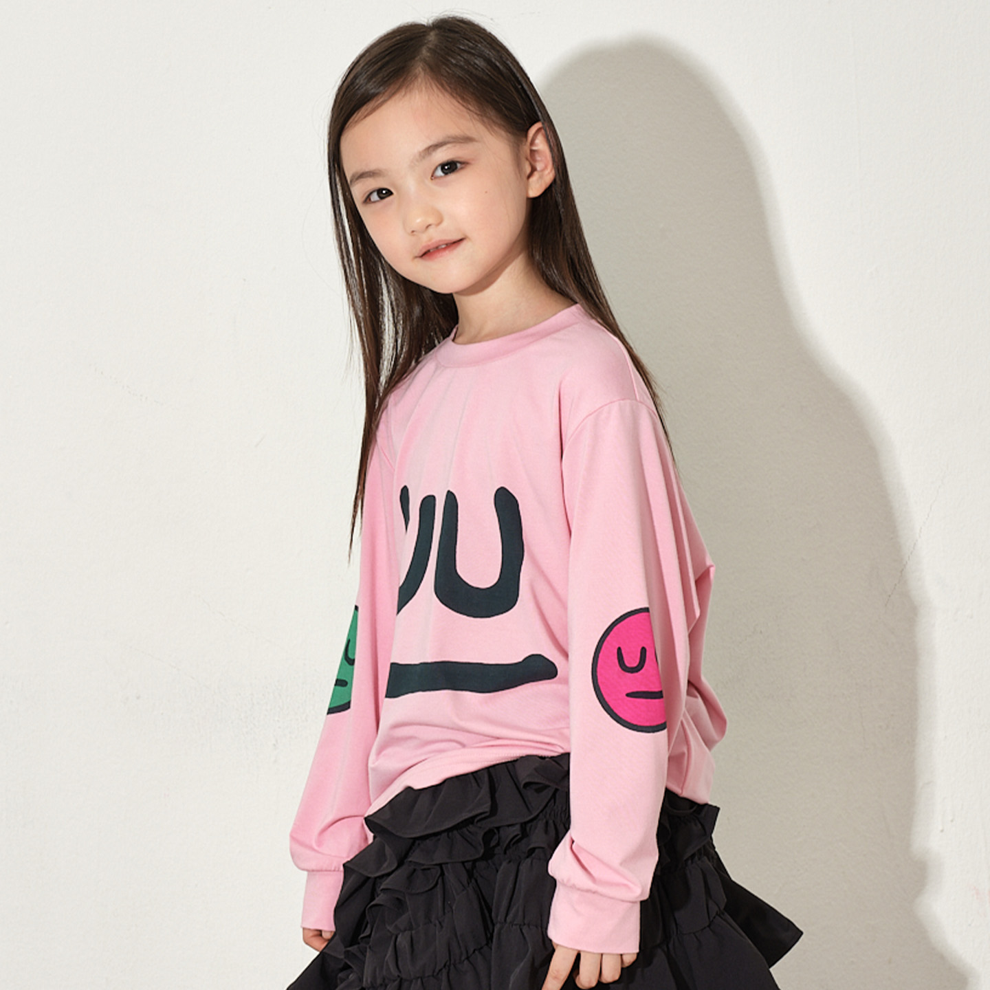 女童舒适笑脸印花上衣长袖 童装 T恤QSS3TP602X 新款 Qimoo淇木25秋季