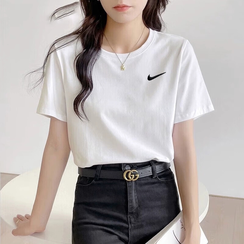 透气运动服情侣装 夏季 透气白色T恤纯色纯棉运动T恤 男女装 耐克短袖