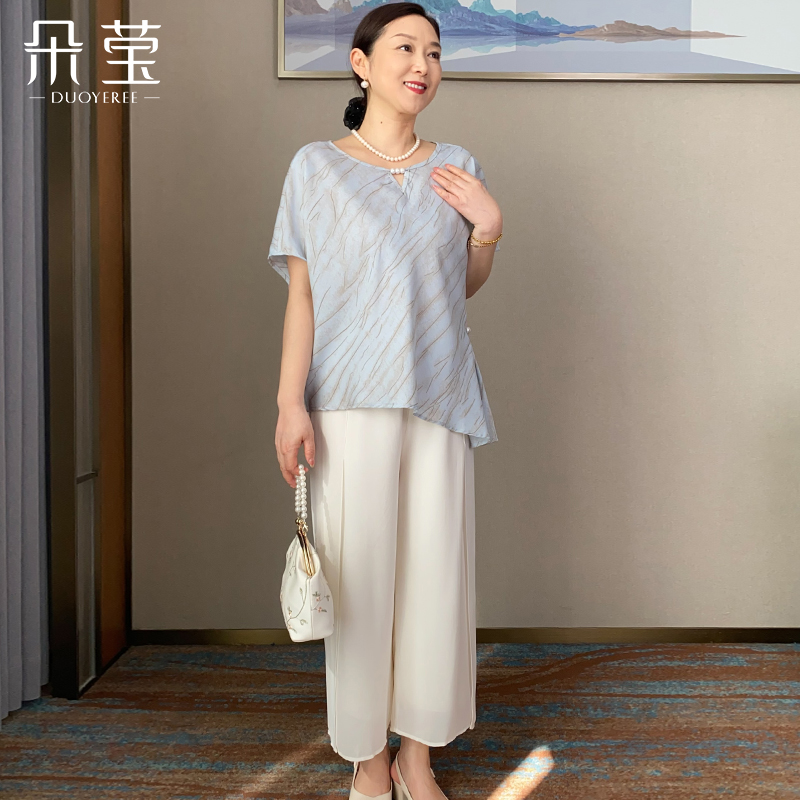 2025夏季 套装 新款 中年女装 子两件套 妈妈夏装 中老年上衣裤 洋气小衫