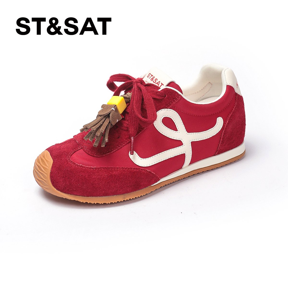 厚底真皮休闲阿甘鞋 星期六复古内增高红色德训鞋 秋季 2025新款 女款