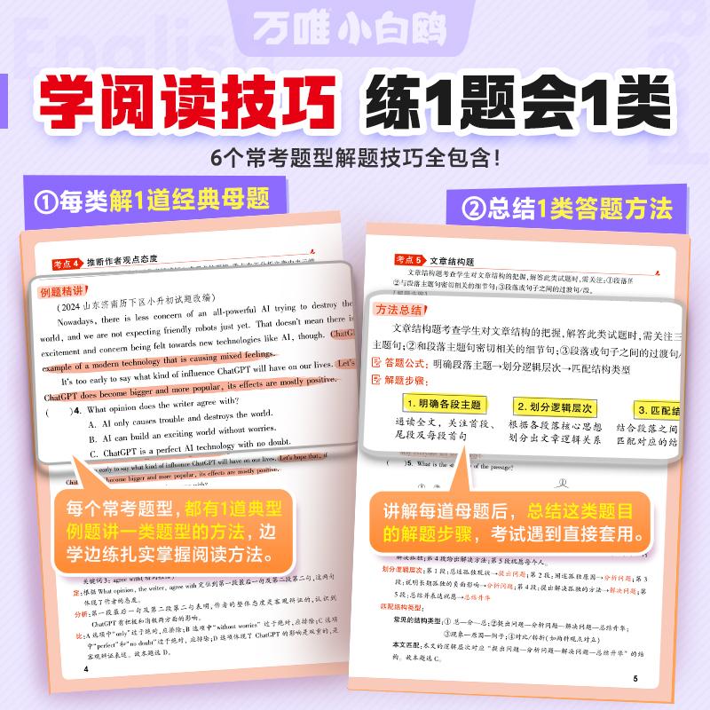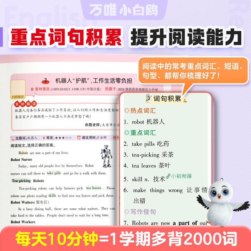 25新书万唯小白鸥英语时文阅读小学阅读理解专项训练完形填空天天练热点题型练习册三年级上下册英语真题同源同步练习小白鸽