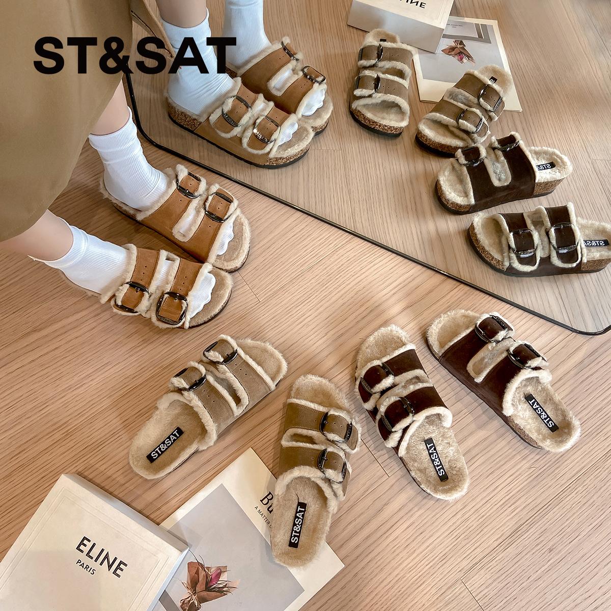 懒人毛毛鞋 舒适茸茸毛圈口平底休闲乐福鞋 1119002 女士时尚 UGG秋季