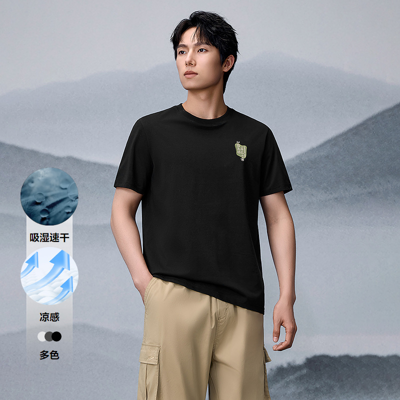 HLA T恤25春夏新圆领短t男 海澜之家山不在高系列凉感吸湿速干短袖