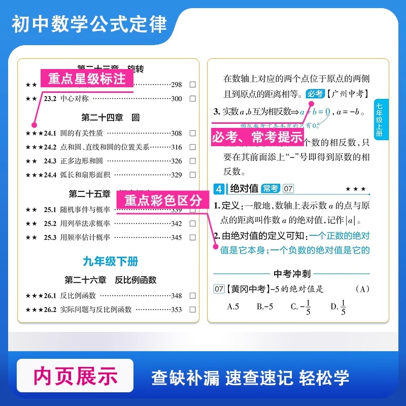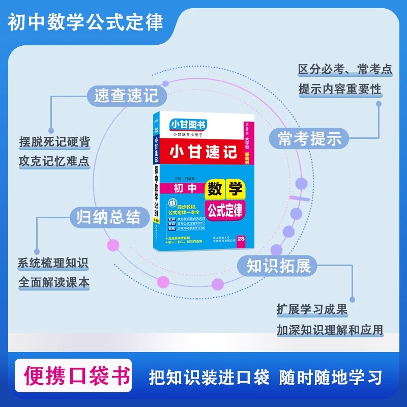 定律必背随身记口袋书 初中语文数学英语物理化学生物政治历史基础知识大全七年级八九年级单词词汇文言文全解公式 2025季 小甘速记