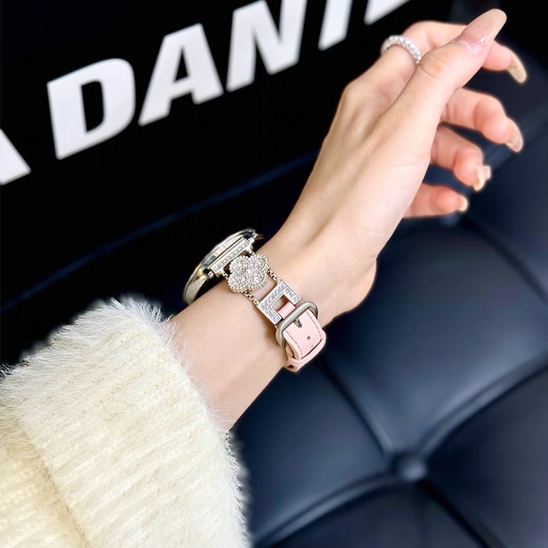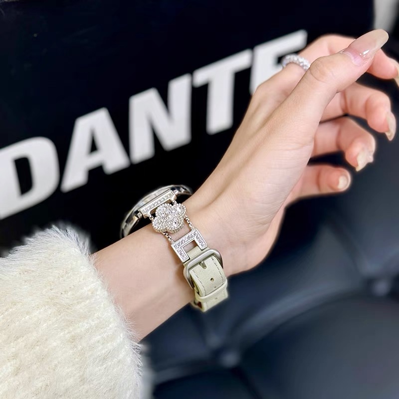 适用华为fit3表带〔裸眼爆闪〕星芒满钻头层牛皮表带watchFit2高级45mm秋冬iwatchS10 5代se表链41mm