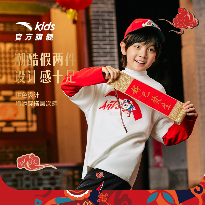 男童长袖 安踏儿童装 T恤针织衫 2025春款 潮流T恤 打底衫 新年系列
