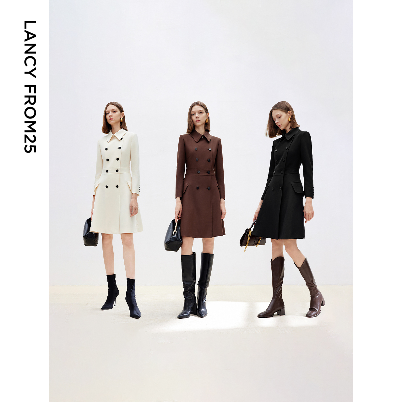提花复古重工收腰显瘦连衣裙女 LULUALWAY25春秋新款 商场同款
