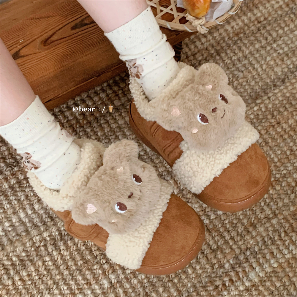 可爱厚底防滑室内外穿卡通保暖棉鞋 2025新款 女士秋冬季 加绒棉拖鞋