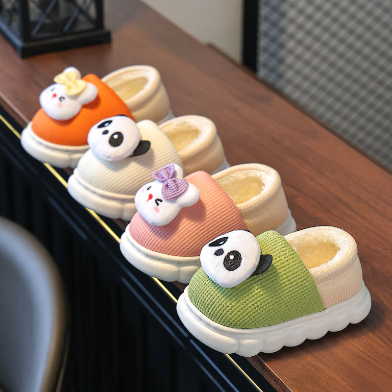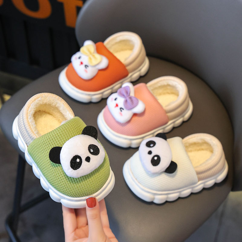 包跟男童女童家居卡通可爱室内防滑保暖宝宝棉鞋 儿童棉拖鞋 秋冬季