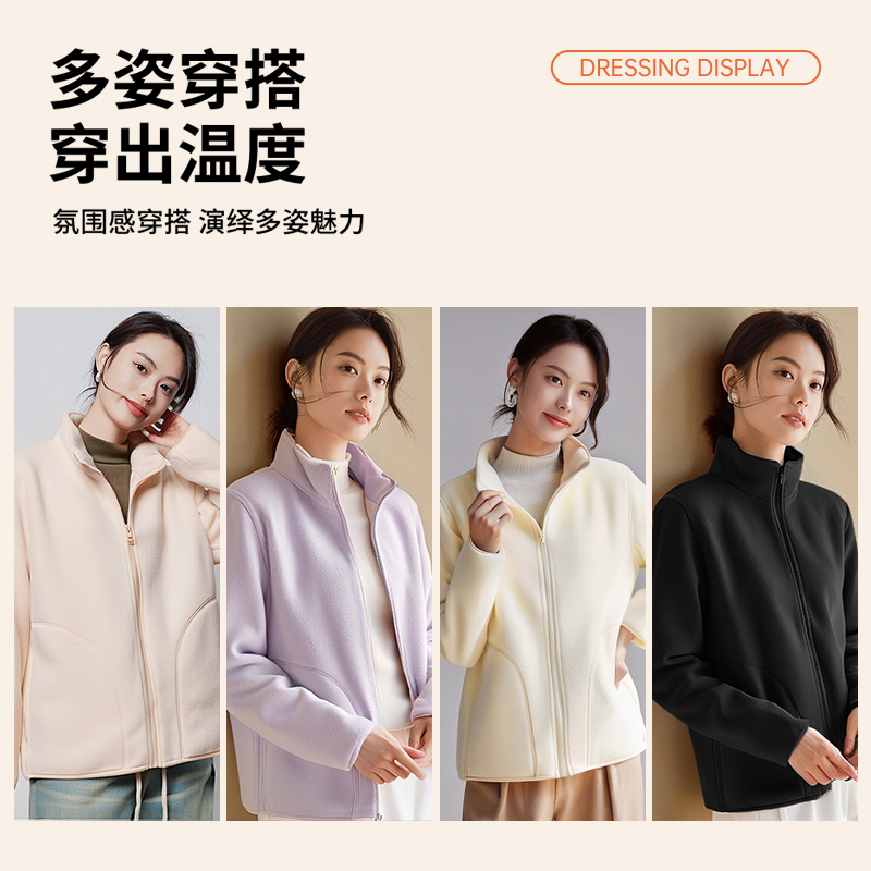 班尼路紫色冲锋衣内胆加绒上衣2025新款 立领摇粒绒外套女H 秋冬季