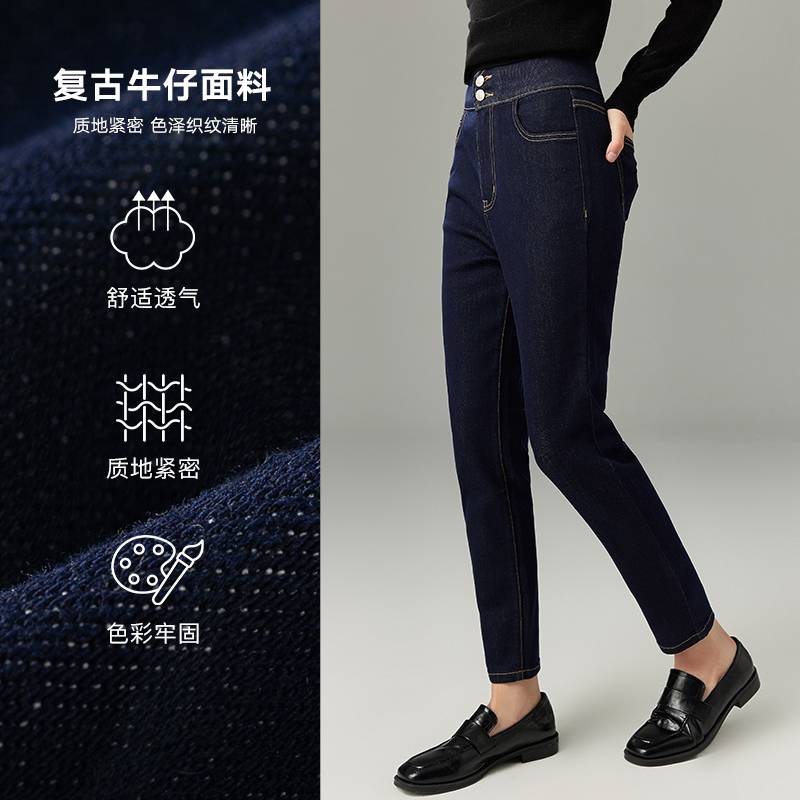 小个子长裤 黑色高腰牛仔裤 kbne2025秋冬新款 直筒裤 气质 女小脚裤
