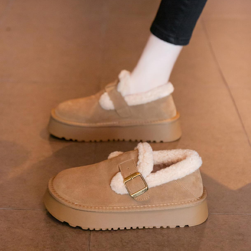 雪地靴豆豆鞋 真皮厚底勃肯鞋 2025年新款 加绒抗寒乐福棉鞋 女秋冬季