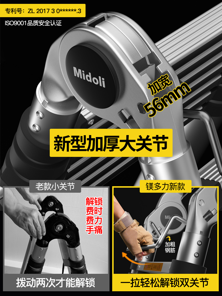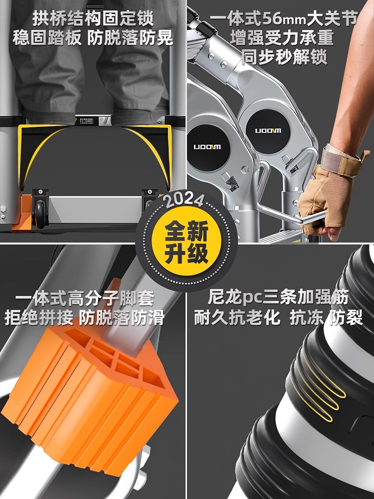 镁多力伸缩梯子铝合金加厚工程人字梯家用折叠多功能便携升降楼梯