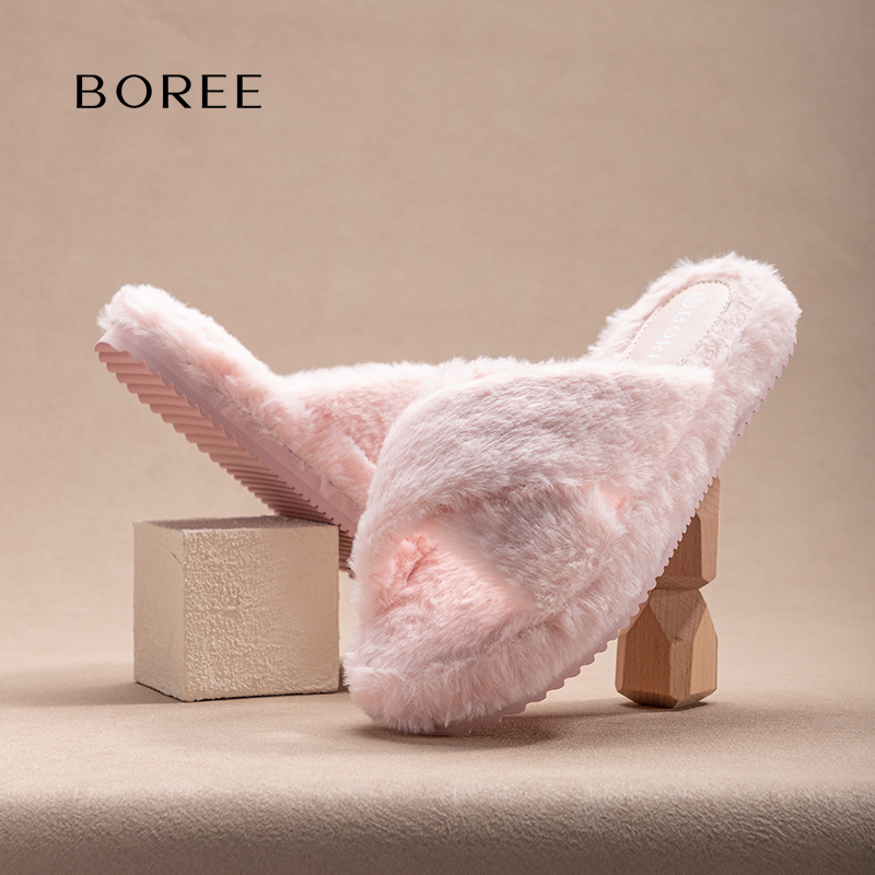 一字拖毛毛鞋 加绒加厚东北大棉鞋 子棉拖 新款 厚底雪地靴女2025冬季