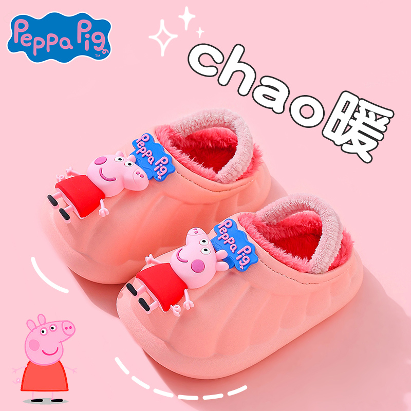 小猪佩奇儿童棉拖鞋 3岁宝宝棉拖 冬男女童松紧带保暖加绒婴幼儿1