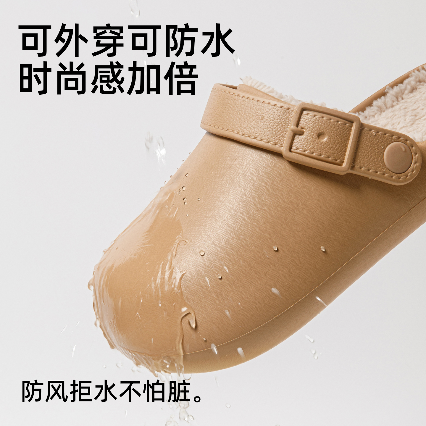 男冬 防滑厚底毛绒保暖可外穿情侣棉拖鞋 买一送一防水棉拖鞋 女冬季